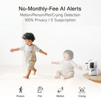 Lifetime AI Detection Alerts: Detects person, pet & baby crying with no extra fee, reduces false alarms, with instant phone notifications.