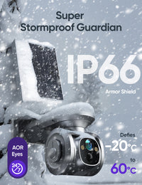 - Solar-Powered, Cold-Resistant: Super-capacity 18,000mAh battery + 8W solar panel ensures nonstop power, even in a winter storm. IP66 waterproof and -22°F cold-resistant with built-in low-temp. charging tech.