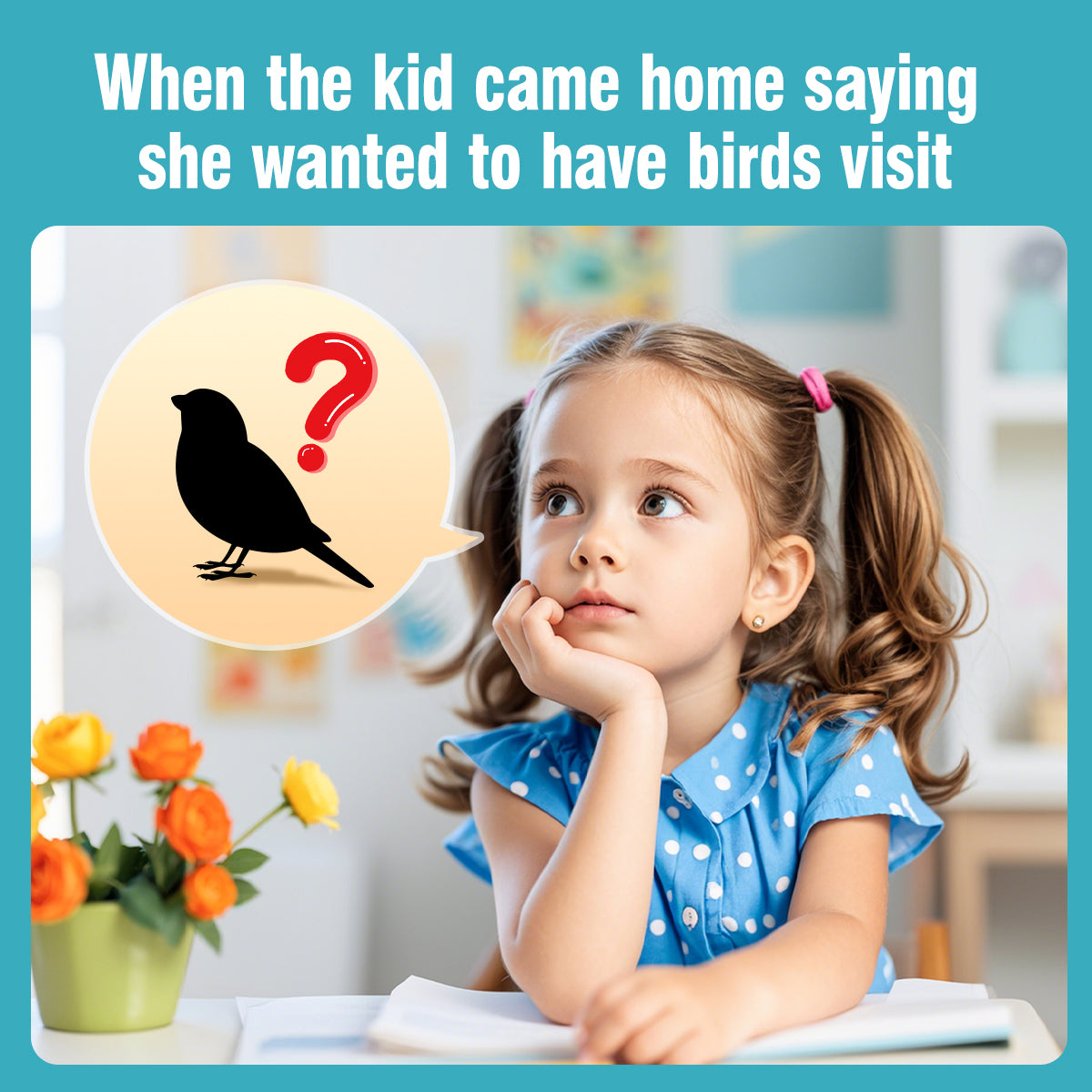The child told mom about wanting to watch birds. Mom got the Cinmoore smart bird feeder with camera as a gift. They were excited to start.