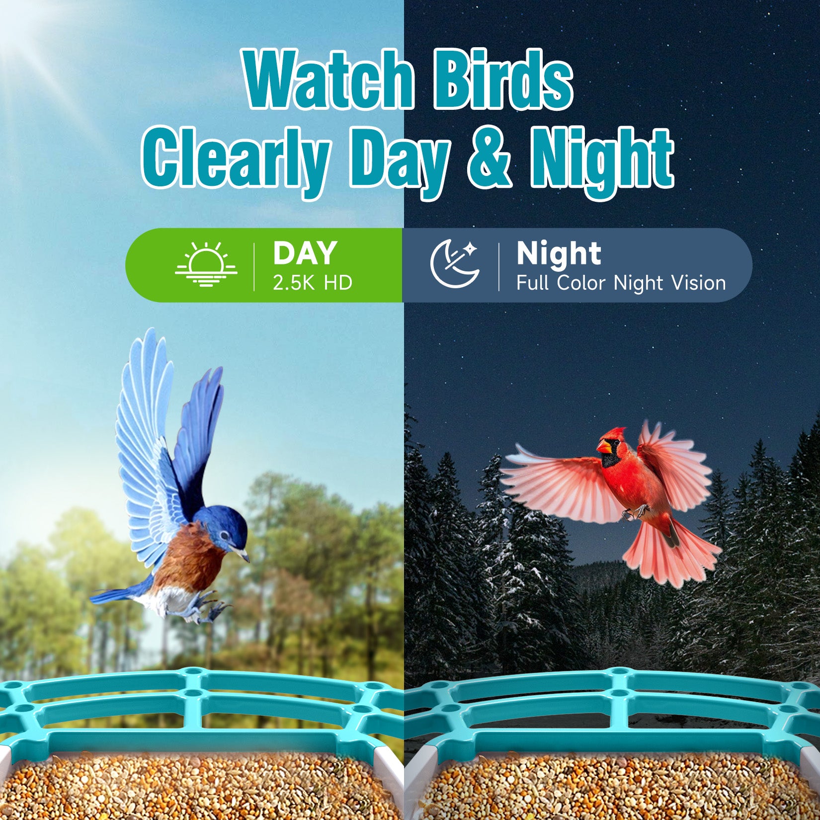 - 2.5K HD Birdwatching Camera: Ultra-clear 4MP lens with color night vision—watch birds anytime via WiFi.